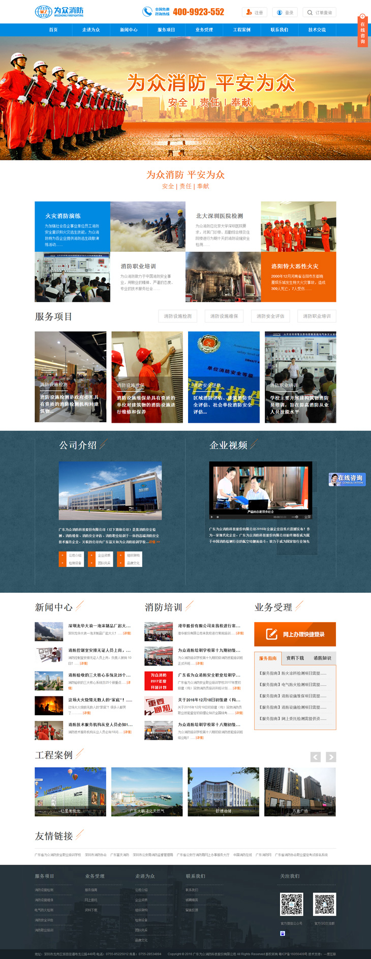 廣東省廣東為眾消防科技股份有限公司(以下簡稱公司)是集消防安全檢測、消防維保、消防安全評估、消防職業(yè)培訓(xùn)于一體的高端消防安全技術(shù)服務(wù)企業(yè),關(guān)聯(lián)的公司有廣東富天消防設(shè)備檢測有限公司和廣東省為眾消防安全職業(yè)培訓(xùn)學(xué)校。公司致力于中國消防安全事業(yè),用敬業(yè)的精神、嚴(yán)謹(jǐn)?shù)膽B(tài)度、專業(yè)的技術(shù)服務(wù)社會。