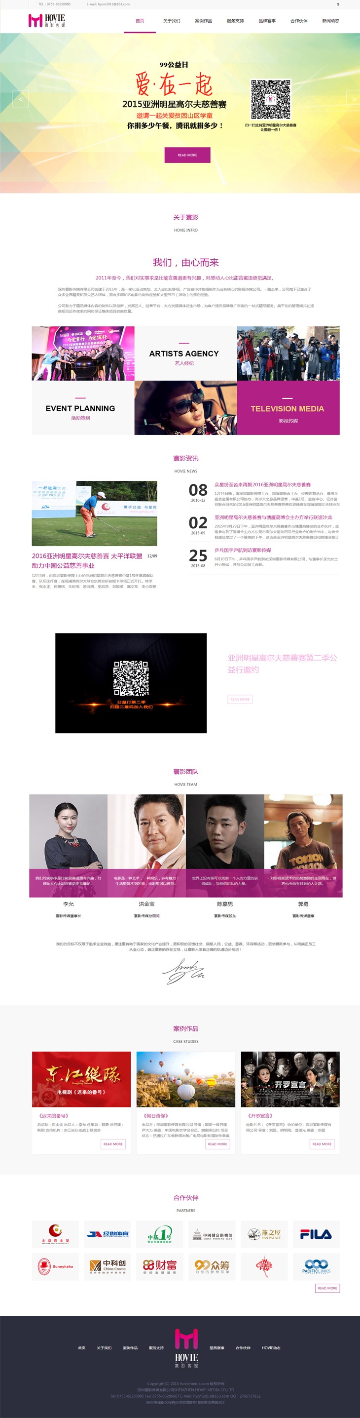 | 項目需求概況: | 公司介紹 深圳寰影傳媒有限公司創(chuàng)建于2011年,是一家以活動策劃、藝人經(jīng)紀和廣告宣傳片拍攝制作為業(yè)務(wù)核心的影視傳媒公司。一路走來,公司麾下已集合了眾多業(yè)界精英和頂尖藝人團體,擁 |